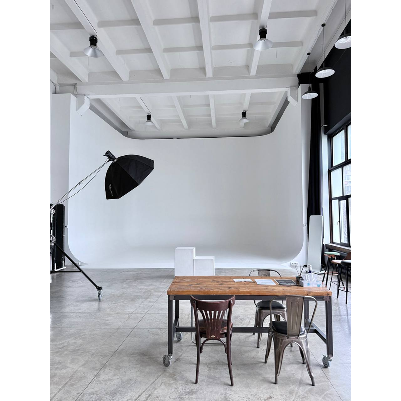 EVENT HALL — большая светлая студия с уникальной 3 WALL циклорамой, с теплым электрическим полом. П - образная циклорама дает безграничные возможности для реализации проектов любого формата и масштаба. Студия подходит как для фото, так и для видео сьемок.