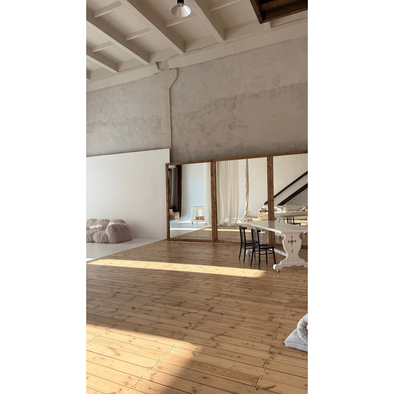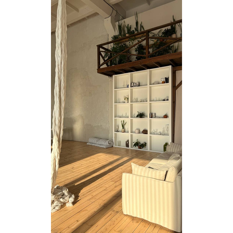 Большая, светлая студия со вторым светом. Панорамные окна выходящие на юго-запад, пол из натурального дерева, огромная белая циклорама вдоль больших окон. Зал Арт идеально подходит для стильных свадебных, семейных и индивидуальных фотосессий, контент сьемок. Так же зал Арт любят большие корпоративные компании за его пространсво, простор и удобную геометрию в форме квадрата. Солнечный свет с 12:00 дня, закатное солнце после 18:00. Авторский стиль студии сочетает в себе элементы современного дизайна и домашнего уюта. Зал наполнен различной мебелью, световым оборудованием и сьемочным реквизитом. Для комфортного сьемочного процесса имеется переодевалка, зеркала и гримерный стол.